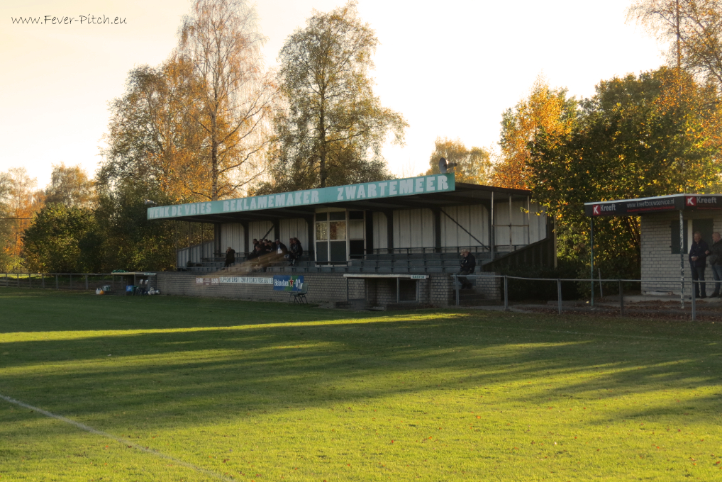 Als Kontrastprogramm ging es heute auch in die tiefen Tiefen des niederländischen Amateurfußballs (die „Vierde“ Klasse dürfte die 9. Liga sein) ins unmittelbar hinter der Grenze liegende Städtchen Zwartemeer, welches bereits nach ca. 20 Min. Autofahrt erreicht war. So konnte man nach Zahlung von drei Euro Einritt auf der recht gepflegten Sportanlage samt netter kleiner Tribüne und großzügiger Vereinskneipe bei schönem Wetter einige Dinge besprechen und dem technisch limitiertem, aber durchaus kämpferisch geführten Kick frönen, in dem die Gäste von den Boys aus Zwaartemeer ganze fünf Dinger eingeschenkt bekamen und damit noch gut bedient waren.